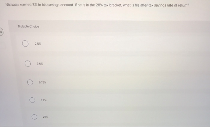 Solved Nicholas Earned 8 In His Savings Account If He Is Chegg Com